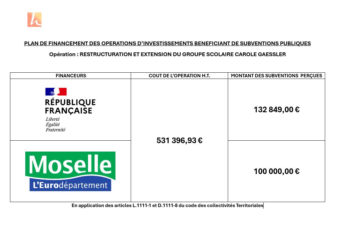 Plan de financement subventionné par l’Etat